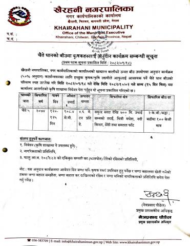 चैते धानको बीउमा कृषकहरुलाई अनुदान कार्यक्रम सम्बन्धी सूचना ।