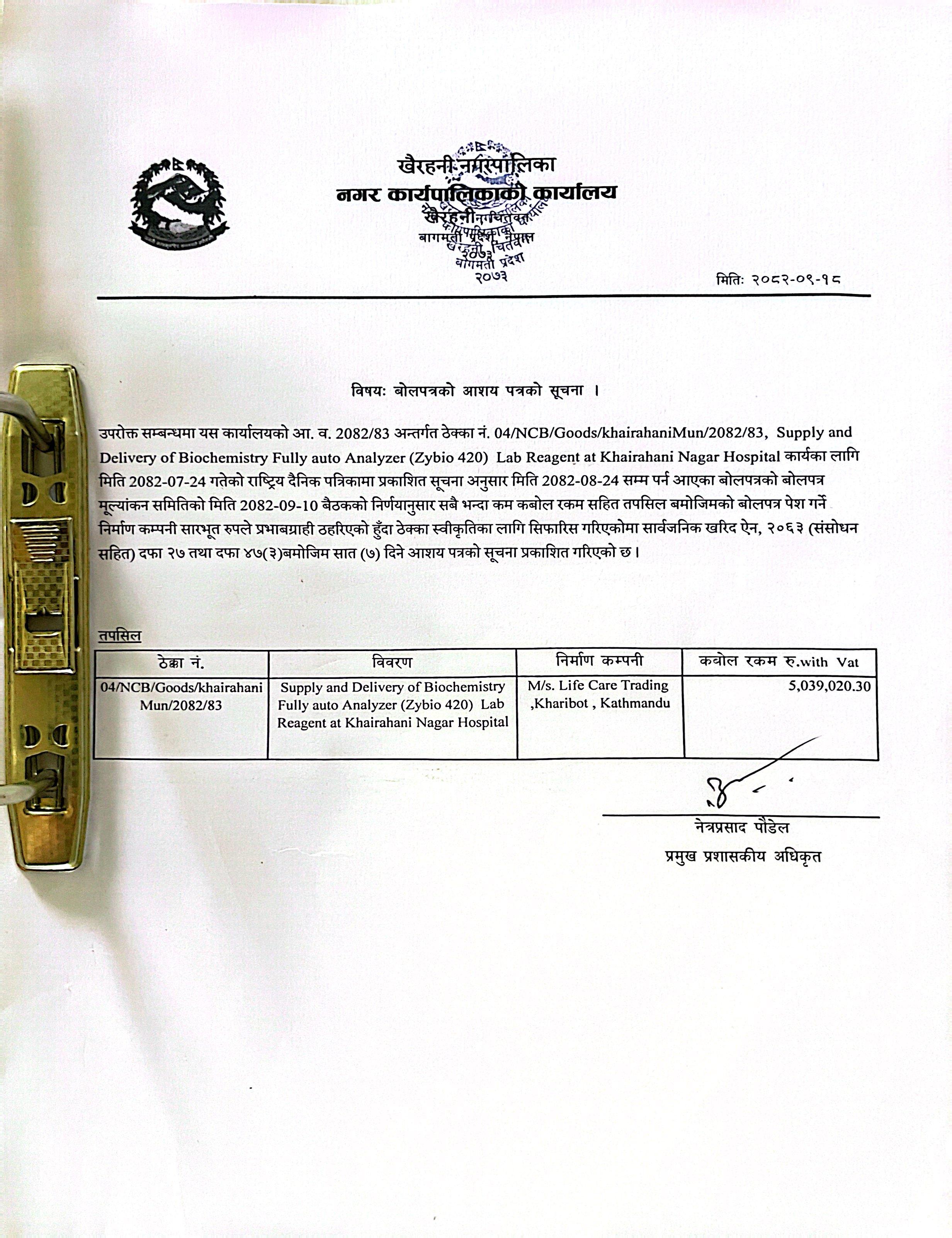 बोलपत्रको आशय पत्रको सूचना ।