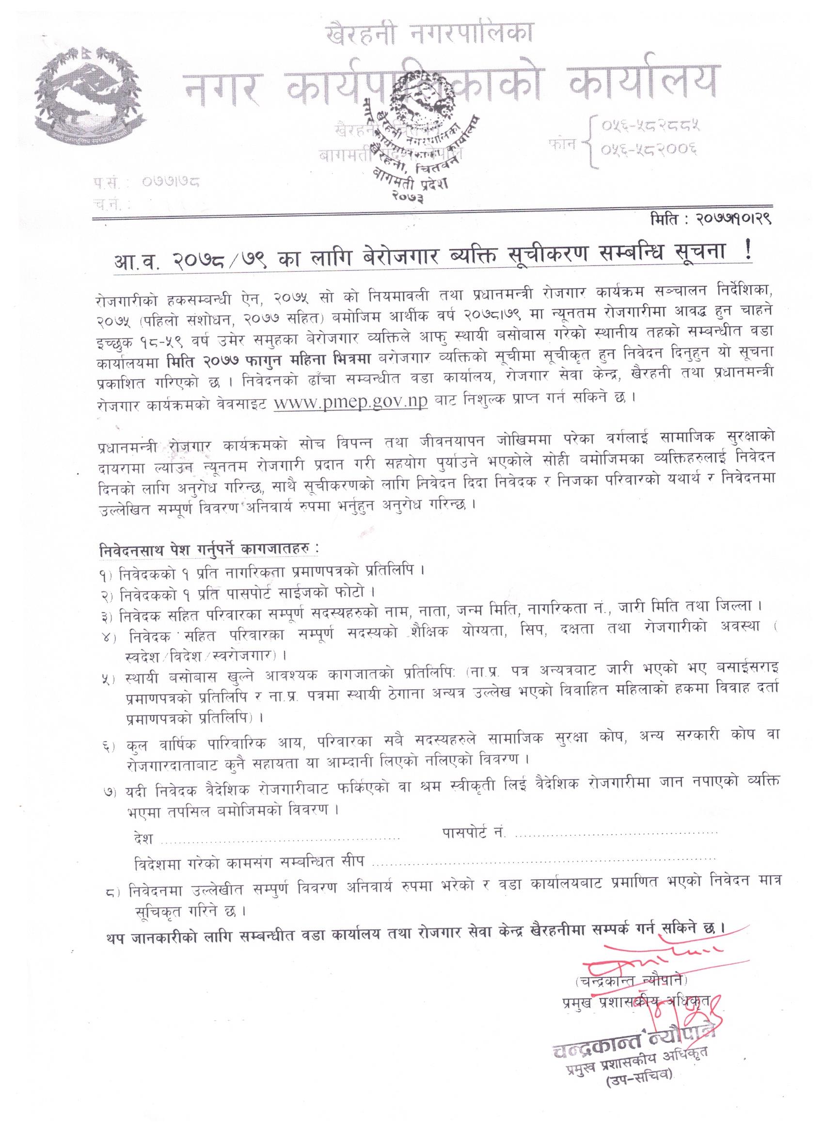 आ.व.२०७८/७९ का लागि बेरोजगार व्यक्ति सूचीकरण गर्ने सम्बन्धमा !!