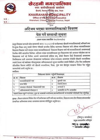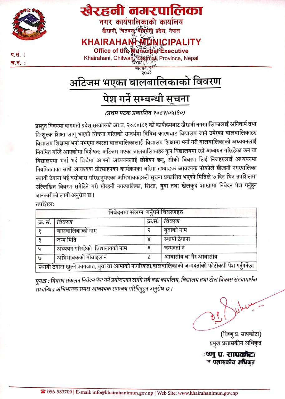 Home » अटिजम भएका बालबालिकाको विवरण पेश गर्ने सम्बन्धी सूचना !!