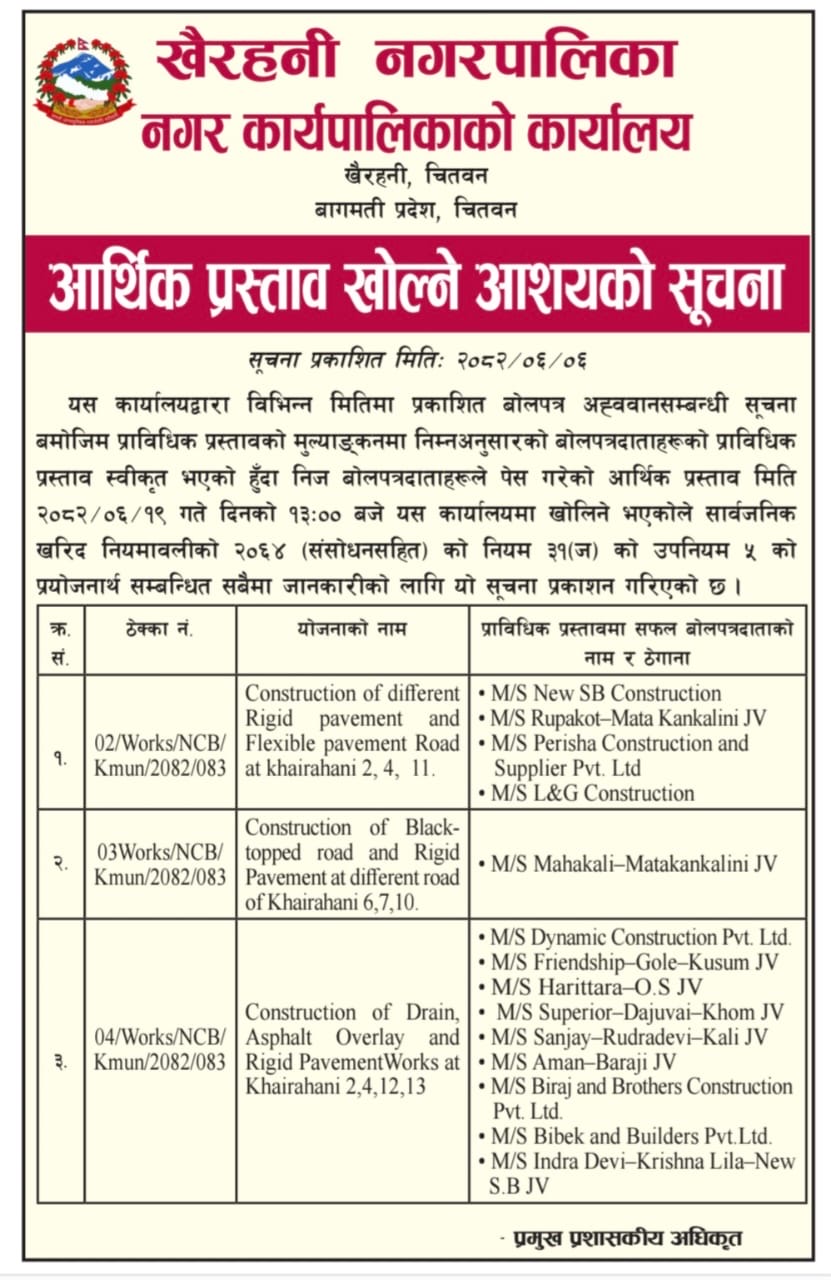 आर्थिक प्रस्ताव खोल्ने आशयको सूचना