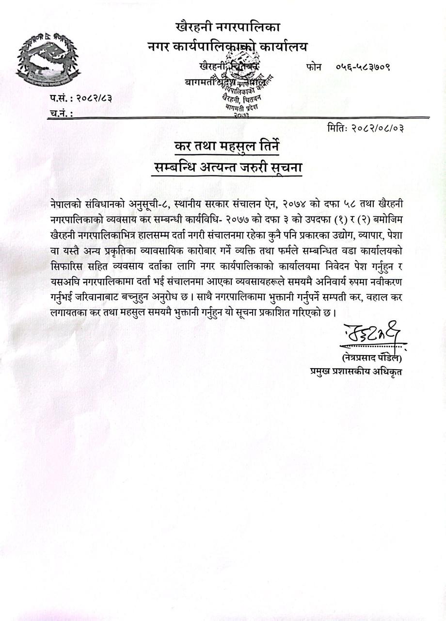 Home » कर तथा महसुल तिर्ने सम्बन्धि अत्यन्त जरुरी सूचना ।।