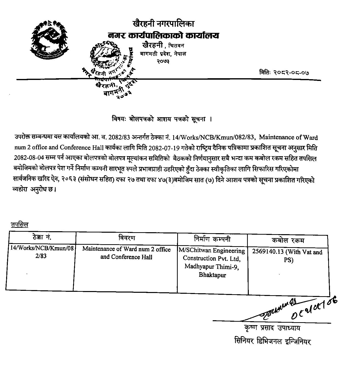 Home » बोलपत्र(14/Works/NCB/Kmun/082/83)को आशय पत्रको सूचना ।