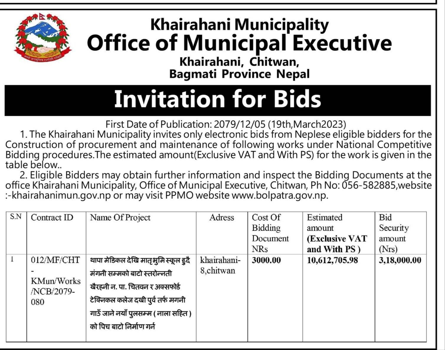 सार्वजनिक खरीद / बोलपत्र सूचना